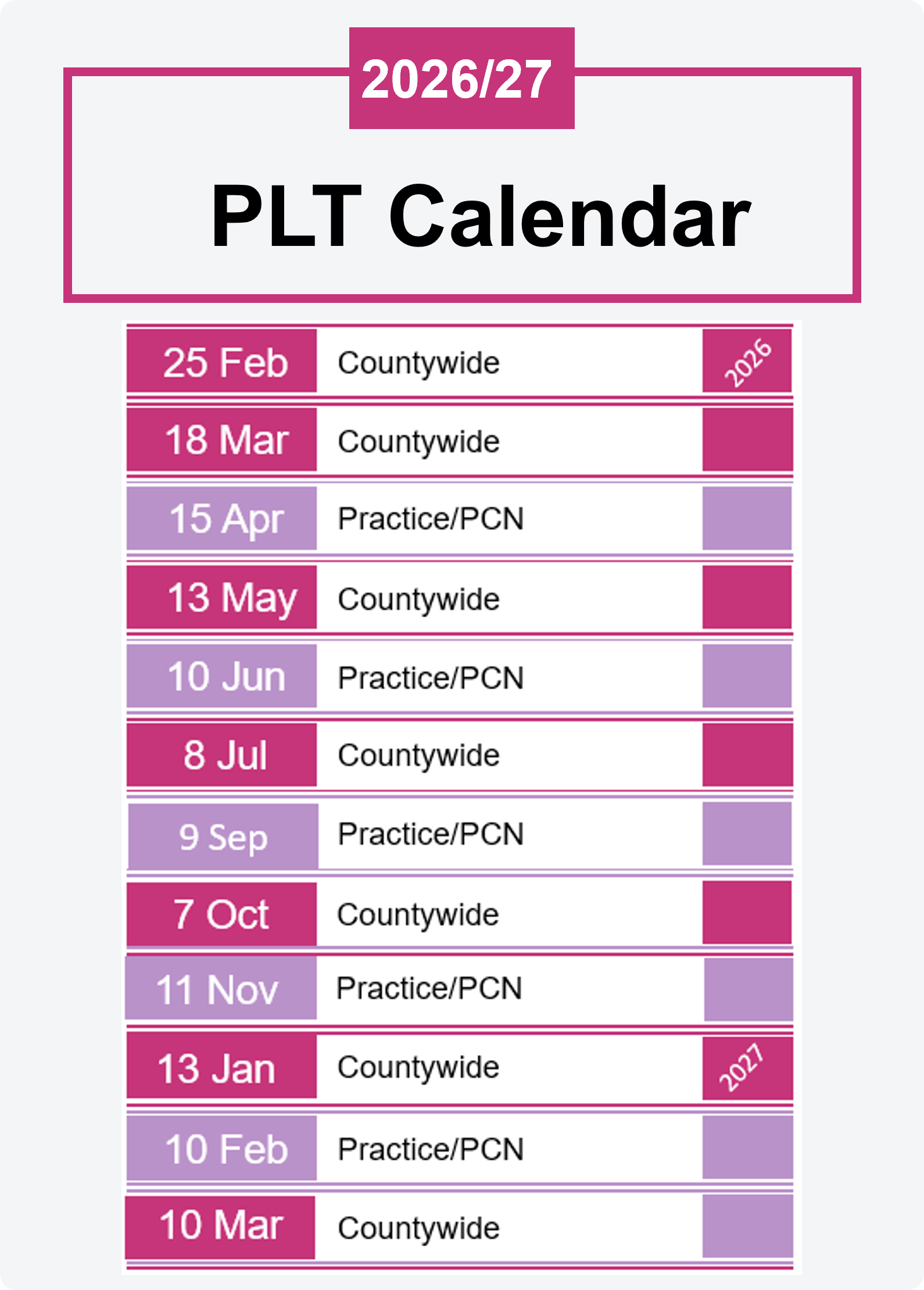 We really value the opportunity afforded to Northamptonshire GP practice staff of having dedicate protected learning time. PLT creates an opportunity for healthcare professionals to learn about new clinical developments, get updates to guidance and best practice whilst sharing experience and knowledge with colleagues.