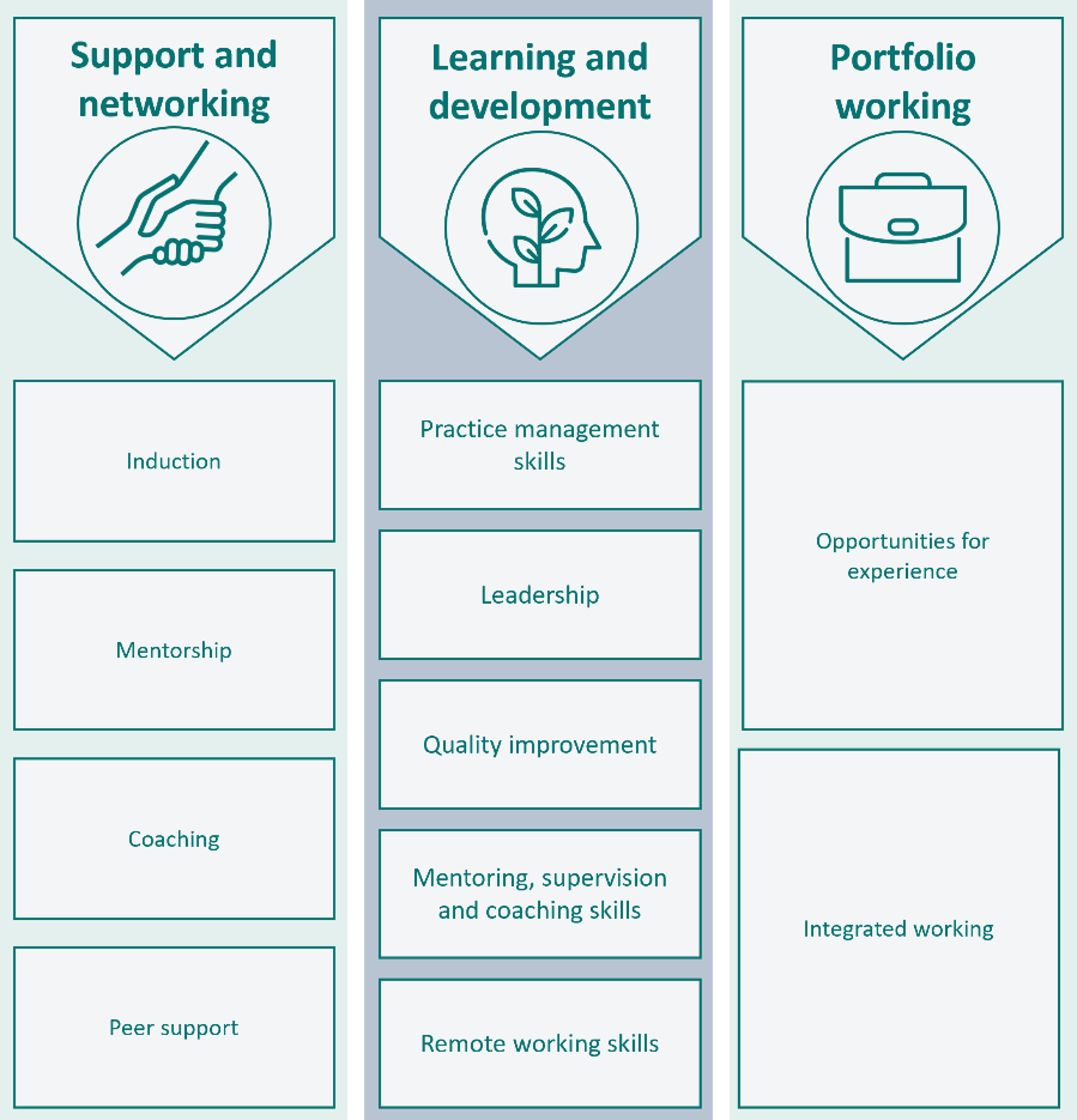 You’ll benefit from a combination of early career learning, mentorship, peer support and coaching, to help you develop clinical and leadership skills and to facilitate development within your practice and across the wider Primary Care Network.